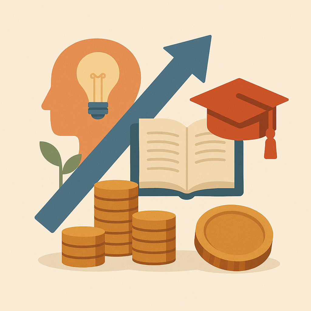 Uit onderzoek blijkt dat werknemers die investeren in hun ontwikkeling gemiddeld 10% tot 20% meer verdienen binnen enkele jaren. Een cursus van €2.000 die je salaris met €200 per maand verhoogt, heeft zichzelf binnen tien maanden terugverdiend. Daarna pluk je er jarenlang de vruchten van.
